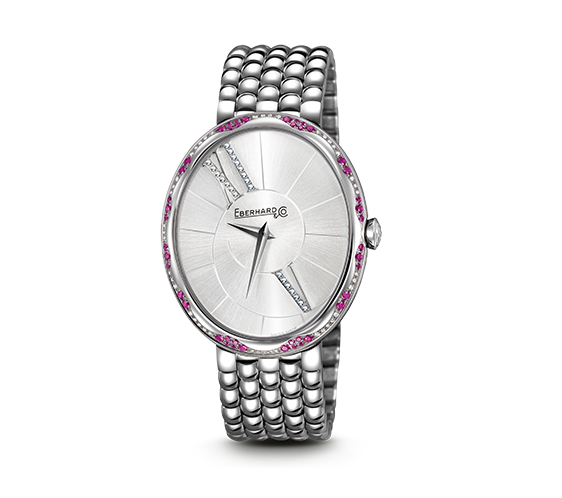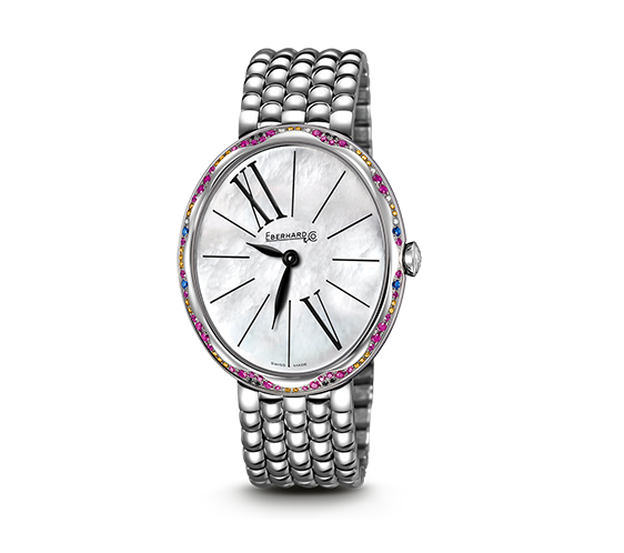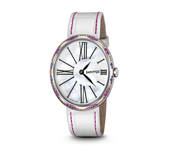 Eberhard & Co. con Gilda ridisegna la sua idea di femminilità. Le linee morbide della cassa ellittica, l’armonia degli esclusivi dettagli e il motivo floreale inciso sul fondello raccontano un’eleganza moderna e insieme eterna. L’estrema raffinatezza di Gilda è arricchita in tutti i modelli da materiali preziosi, come la madreperla e i diamanti, zaffiri e rubini. Un insieme sensuale e volitivo, costellato di piccoli segreti, come una donna.