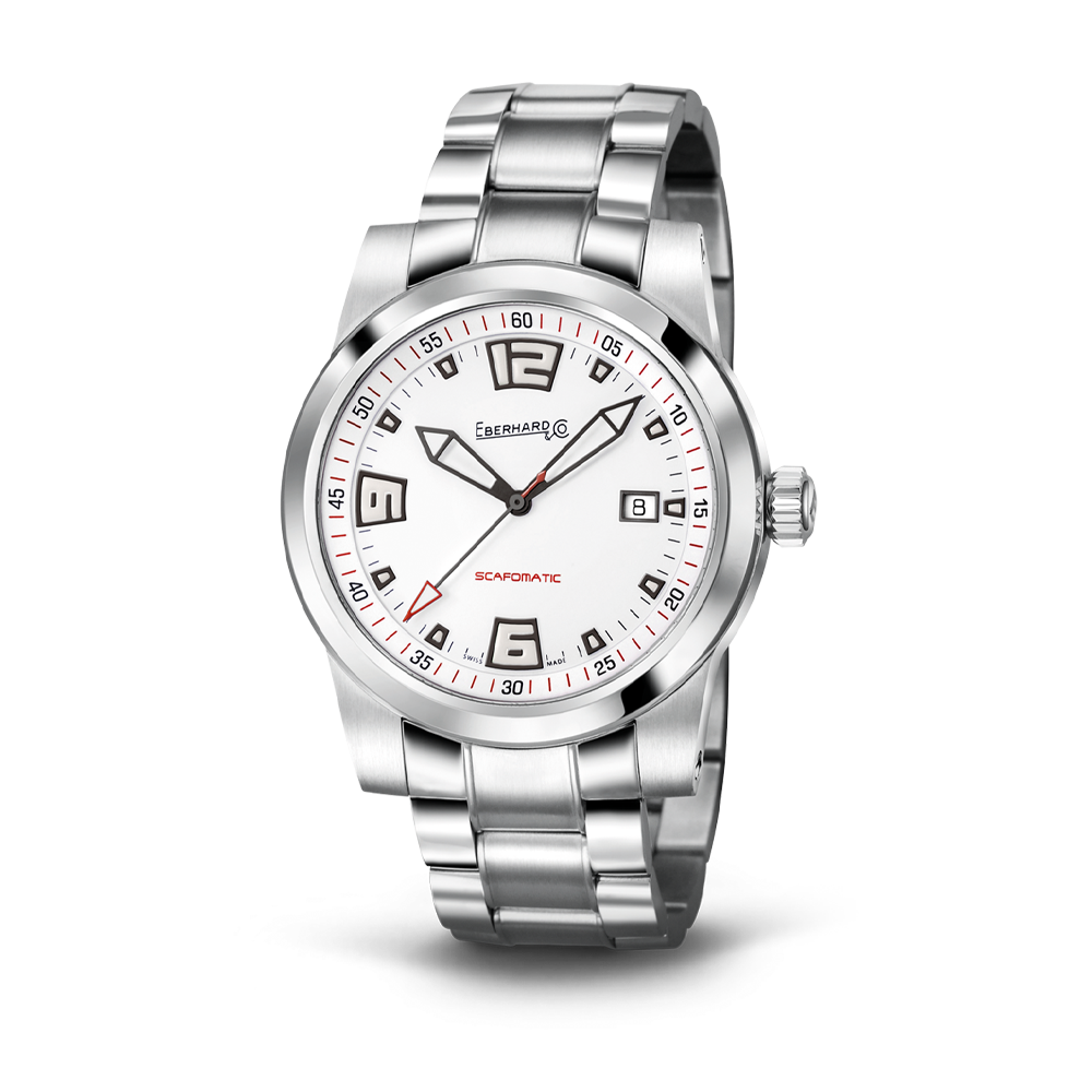 Réhaut avec finition polie et échelle des secondes avec index rouges.