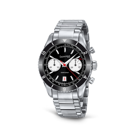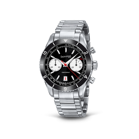 CONTOGRAF OMAGGIA L’OMONIMA COLLEZIONE DEGLI ANNI ’60, REINTERPRETANDOLA CON DETTAGLI INNOVATIVI, COME LA LUNETTA UNIDIREZIONALE IN CERAMICA, LA CHIUSURA DÉCLIC® E IL BRACCIALE CHASSIS®.L’ISPIRAZIONE ORIGINARIA È RICORDATA DALL’INCISIONE SUL FONDO: “TRIBUTE TO CONTOGRAF – 1960S”.