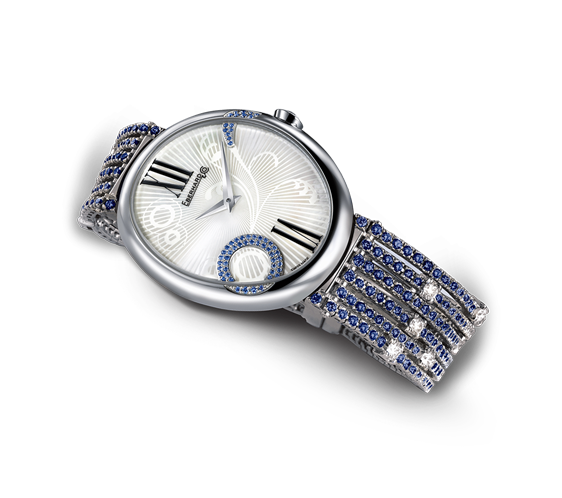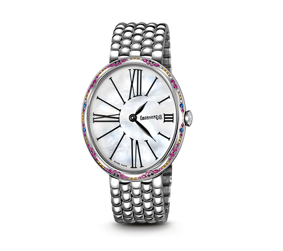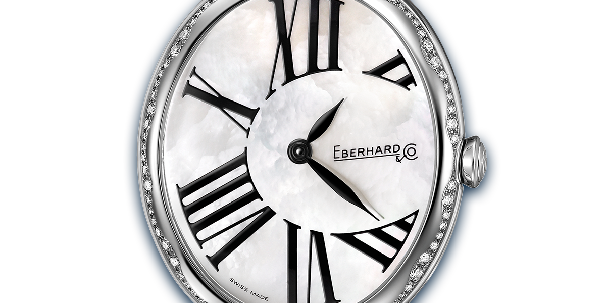 QUADRANTE BIANCO IN MADREPERLA CON NUMERI ROMANI STILIZZATI.