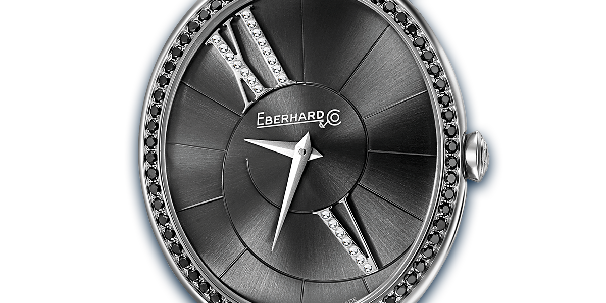QUADRANTE GRIGIO PERLA SATINATO CON TRATTAMENTO “BLACK OR”, VERSIONE “COQUILLE” CON NUMERI ROMANI 5 E 11 IN APPLIQUE DI BRILLANTI.