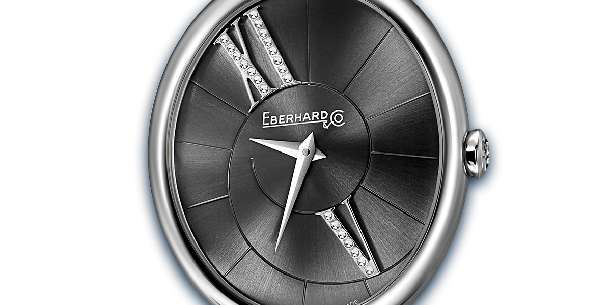QUADRANTE GRIGIO PERLA SATINATO CON TRATTAMENTO “BLACK OR”, VERSIONE “COQUILLE” CON NUMERI ROMANI 5 E 11 IN APPLIQUE DI BRILLANTI.