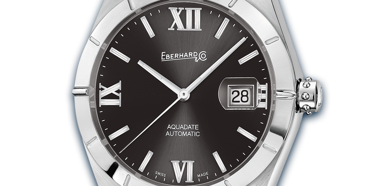 Quadrante grigio “soleil”. Numeri romani e indici appliques con luminescenza bianca.