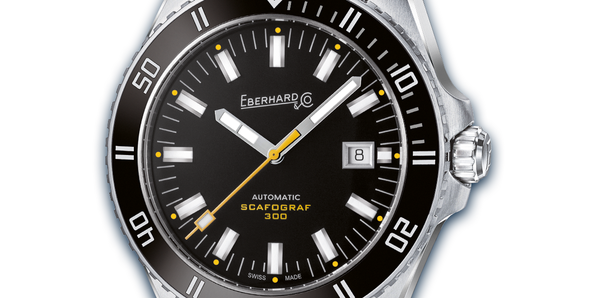 Quadrante nero con finitura matt, “galbé” con dots gialli e indici applique luminescenti.